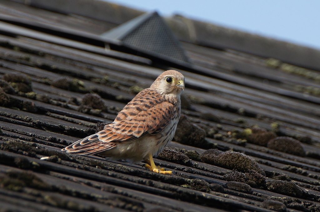 Die jungen Turmfalken verlassen für ihre ersten Flugversuche das Nest.