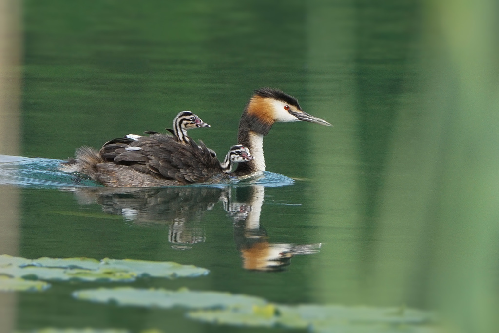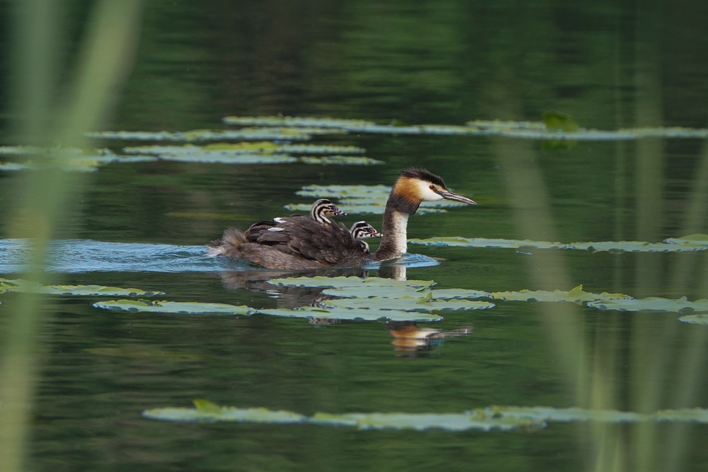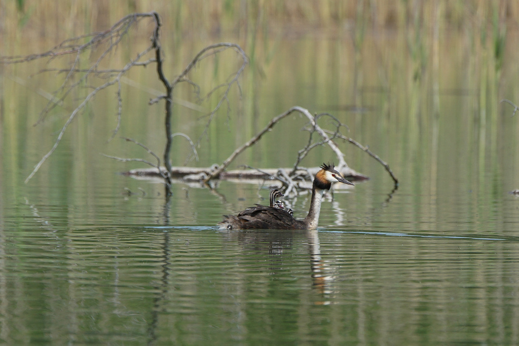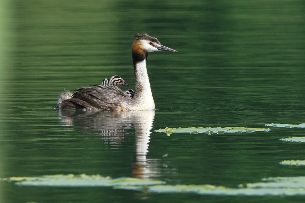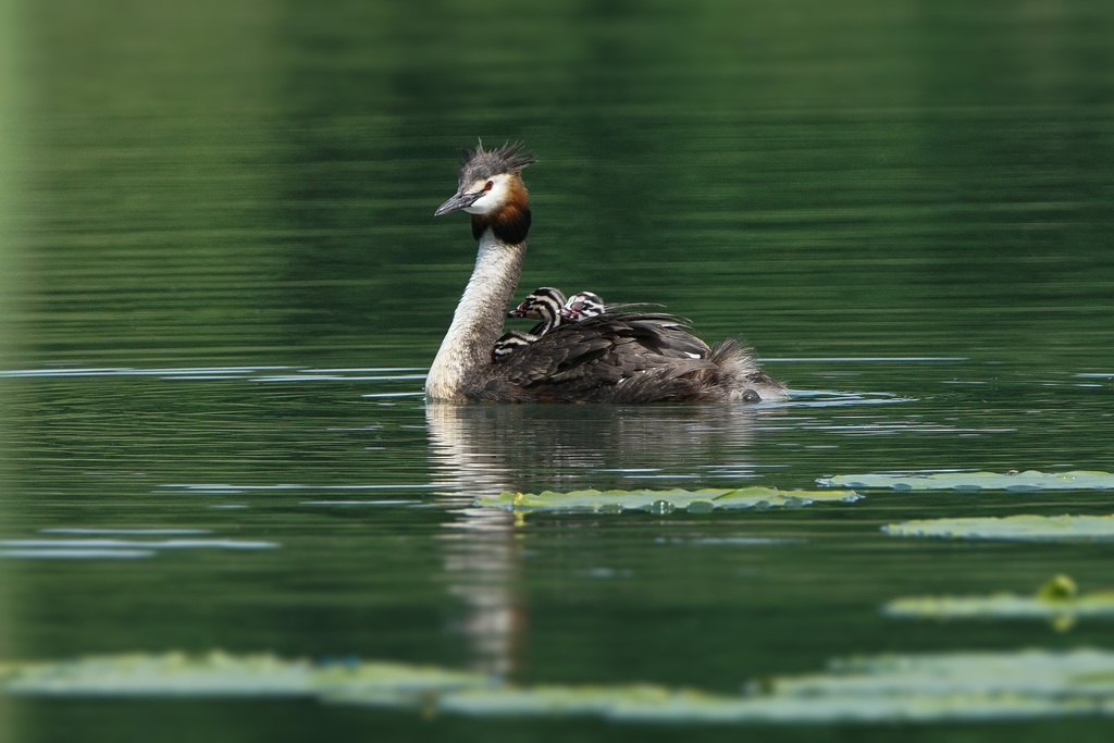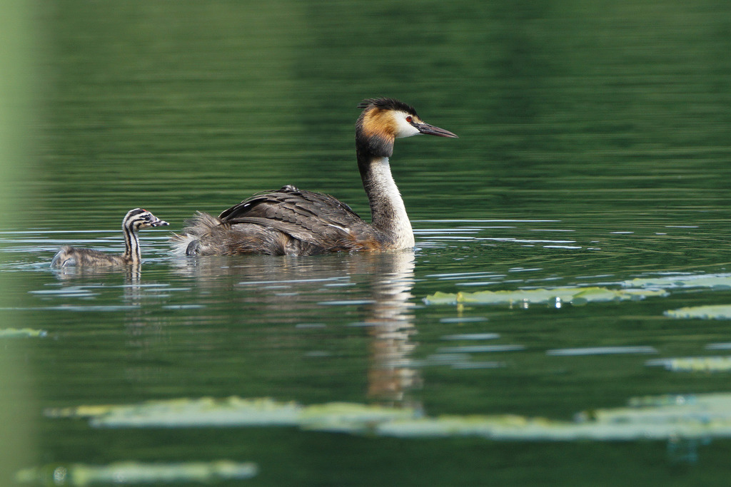 Die Haubentaucherweibchen und Männchen sind so schön anzuschauen in ihrem Prachtkleid und Schlichtkleid. Sie schwimmen häufig mitten auf Seen und verschwinden immer wieder für kurz dauernde aber bis zu 5 bis 20 Meter tiefe Tauchgänge.