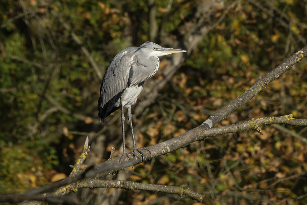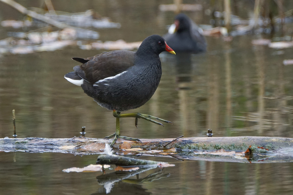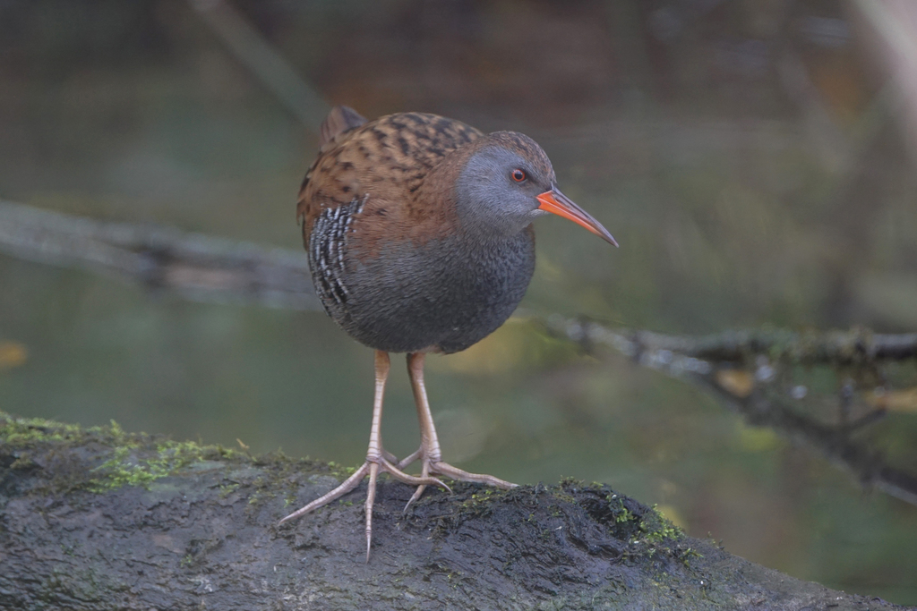 Wasserralle, Teichhuhn, Graureiher und Ringeltaube
