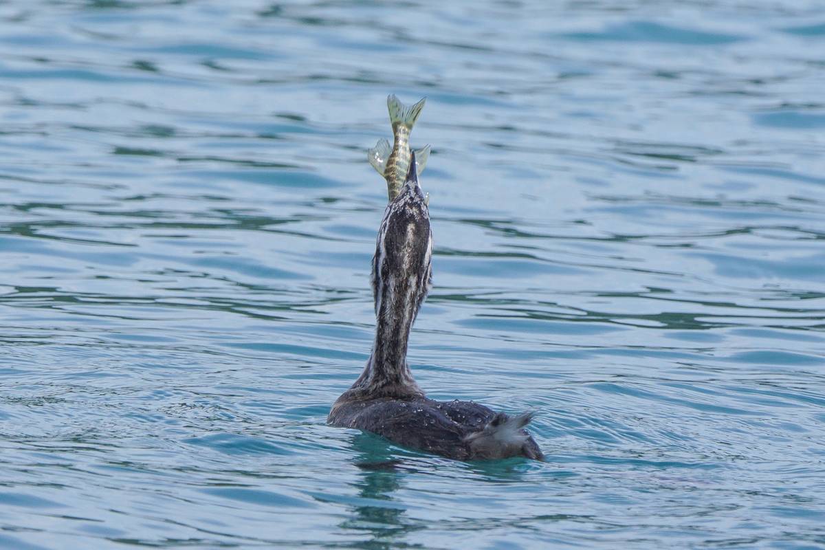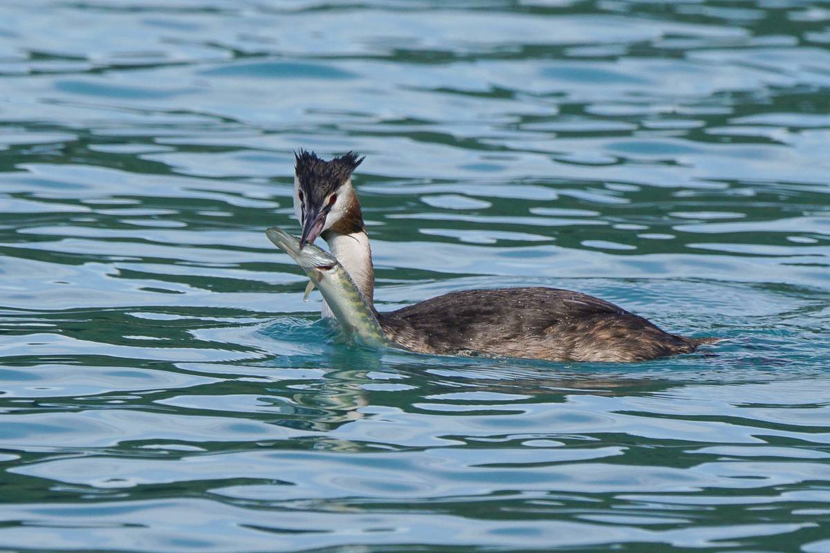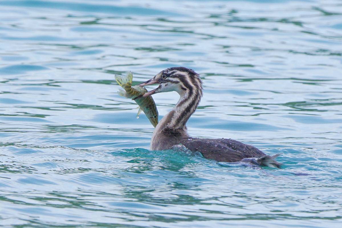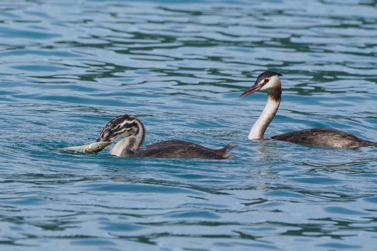 Haubentaucher lernt Jungvogel das Fischen