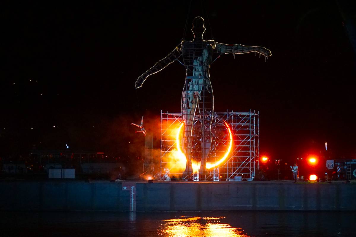 Wahrlich eine beeindruckende Hymne auf den Pioniergeist von A. Einstein, J. Kepler, G Klimt, M. Curie, N. Tesla, J. Goodall uvm..... Das große spektakuläre Erlebnis beginnt mit einem 18 m langem Wal, Feuerwerke, viel Action, eine gebärende Riesin, Klimts "Der Kuss" als Menschenbild in 30 Meter Höhe, ein Ballett aus sieben Heißluftballonen usw. Ein Gesamtkunstwerk mit 700 Mitarbeitern, 7 Kräne, schwimmenden Plattformen, 2 Schubschiffe, 13 Kleinboote, 350 Scheinwerfer, große LED Walls.