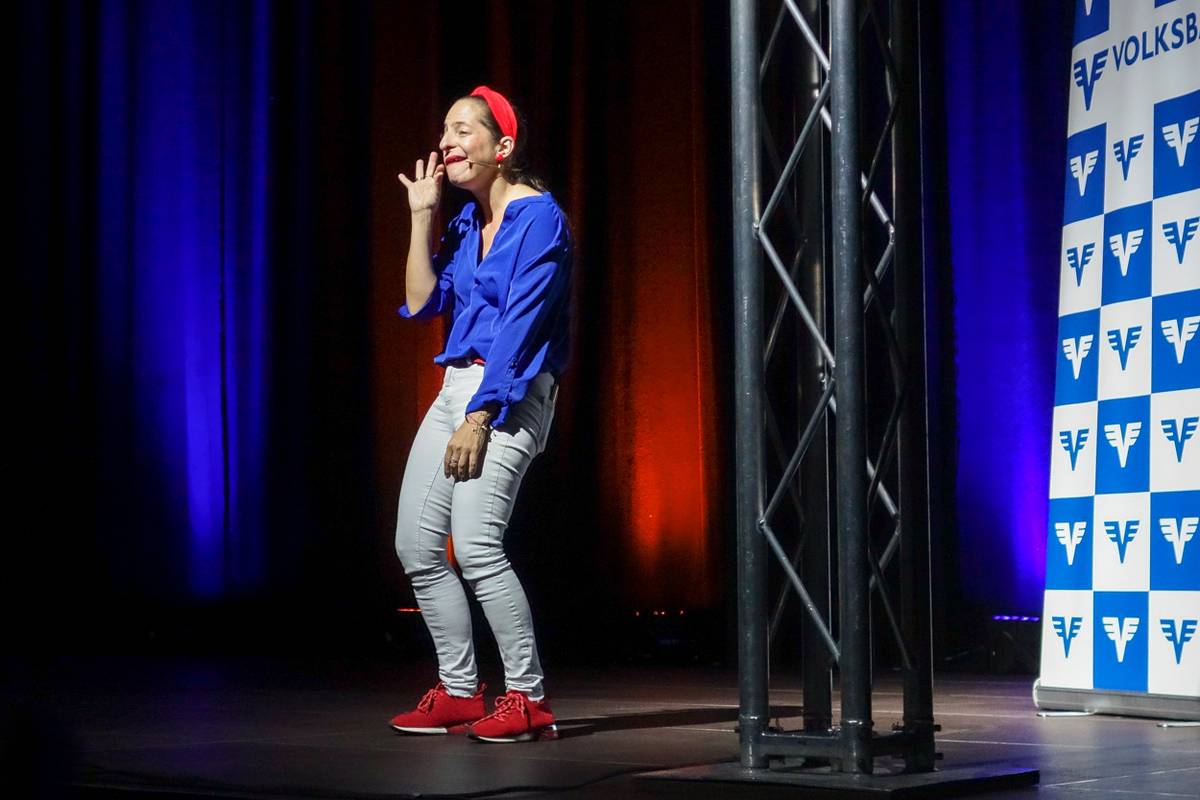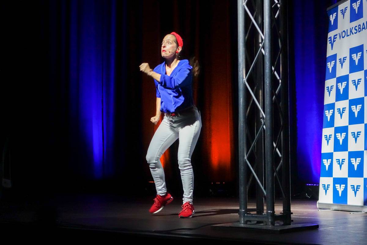 Das aus dem ORF bekannte Multitalent ist nicht nur als Kabarettistin, sondern auch als Autorin, Musicaldarstellerin und Schauspielerin bekannt. Sie entpuppte sich beim Kabarettabend der Volksbank NÖ als wahres Energiebündel und sorgte mit ihrem Tourprogramms „Souvlaki Walzer“ ihrem griechisch-wienerischen Schmäh, pointierten „Wuchteln“ und Gesangseinlagen zu den Nationalitätenunterschieden der Griechen und Österreicher für beste Unterhaltung.