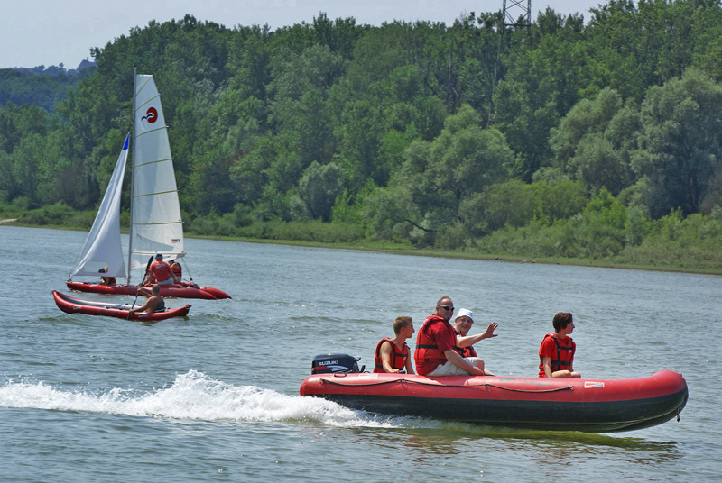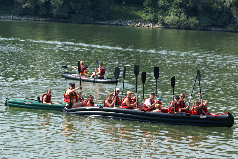 Am Donau Altarm in Wallsee standen 40 Kajaks, Kanadier, Großkanadier, Motorboote, Segelboote und Katamarane der Fa. Grabner zur Verfügung und wurden zum großen Erlebnis für über 80 Kinder, Erwachsene und Betreuer.